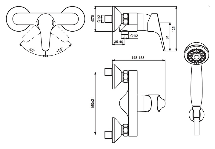 Смеситель для душа Vidima Next BA370AA с душевым гарнитуром