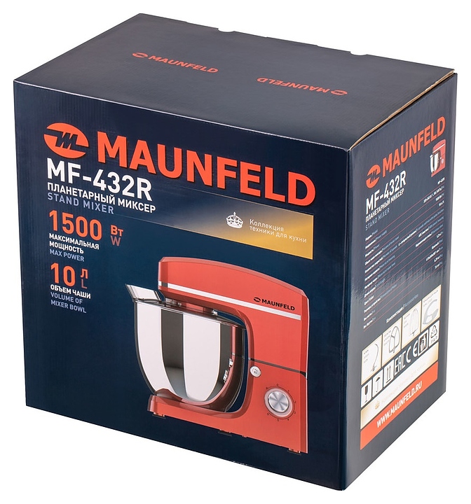 Планетарный миксер Maunfeld MF-432R используется на предприятиях пищевой промышленности, общественного питания и торговли, а также в домашних условиях для замеса теста жидкой консистенции, в том числе белкового, заварного, дрожжевого, бисквитного, а также приготовления кремов и соусов. Модель оснащена электромеханической панелью управления. Корпус выполнен из прочного АБС-пластика с покрытием красного цвета, дежа и рабочие элементы насадок – из высококачественной нержавеющей стали с глянцевой поверхностью, упаковка – картонная коробка. В комлект поставки входят 3 сменные насадки: крюк для теста, лопатка для перемешивания и венчик для взбивания, инструкция по эксплуатации и гарантийный талон. Особенности: