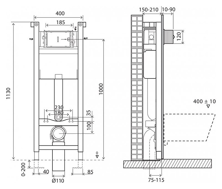 Инсталляция BelBagno BB004-40 EXPERTпредназначена для установки подвесных унитазов. В комплект поставки входят крепежные элементы для унитаза, крепежные элементы для рамы, комплект соединительных патрубков для унитаза, фановый отвод для слива и переходник ø90/110 и G1/2” запорный клапан. Клавиша смыва в комплект поставки не входит и приобретается отдельно. Особенности: