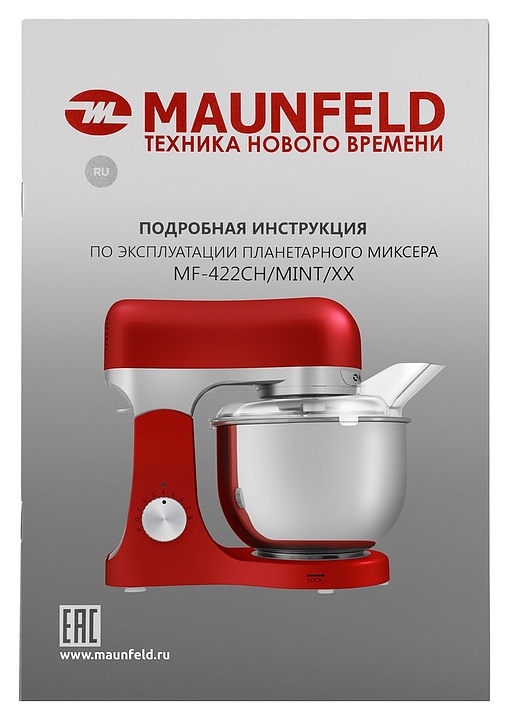 Планетарный миксер Maunfeld MF-422CH используется на предприятиях пищевой промышленности, общественного питания и торговли, а также в домашних условиях для замеса теста жидкой консистенции, в том числе белкового, заварного, дрожжевого, бисквитного, а также приготовления кремов и соусов. Модель оснащена электромеханической панелью управления. Корпус выполнен из алюминия с покрытием вишневого оттенка, дежа и рабочие элементы насадок – из высококачественной нержавеющей стали AISI 304 с глянцевой поверхностью, упаковка – картонная коробка. В комлект поставки входят 3 сменные насадки: крюк для теста, лопатка для перемешивания и венчик для взбивания, инструкция по эксплуатации и гарантийный талон. Особенности: