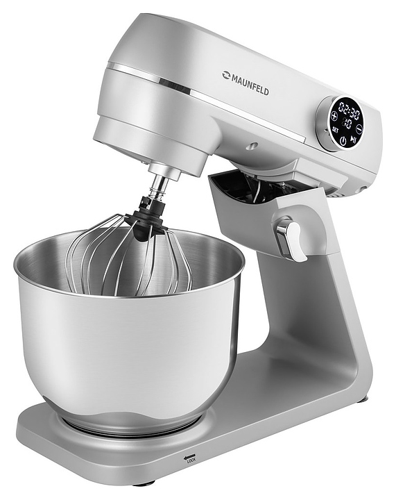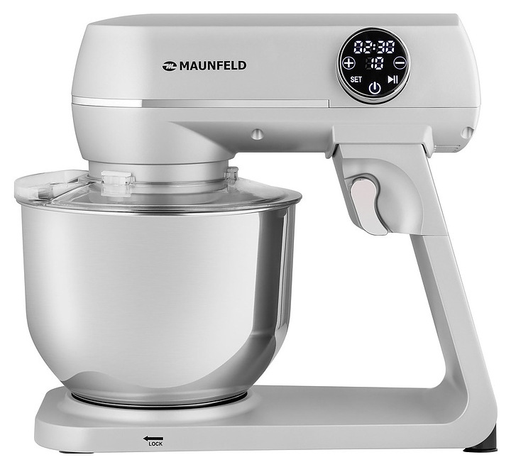 Планетарный миксер Maunfeld MF-423SS используется на предприятиях пищевой промышленности, общественного питания и торговли, а также в домашних условиях для замеса теста жидкой консистенции, в том числе белкового, заварного, дрожжевого, бисквитного, а также приготовления кремов и соусов. Модель оснащена сенсорной панелью управления круглой формы с цифровым дисплеем с яркой голубой светодиодной подсветкой. Корпус выполнен из алюминия с поверхностью цвета нержавеющей стали, дежа и рабочие элементы насадок – из высококачественной нержавеющей стали с глянцевой поверхностью, упаковка – картонная коробка. В комлект поставки входят 3 сменные насадки: крюк для теста, лопатка для перемешивания и венчик для взбивания, инструкция по эксплуатации и гарантийный талон. Особенности: