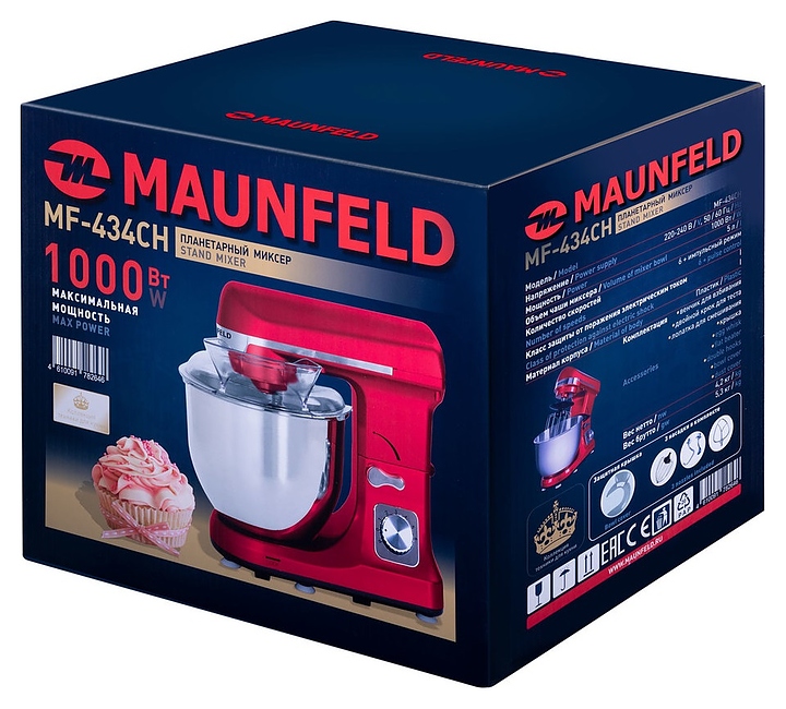 Планетарный миксер Maunfeld MF-434CH используется на предприятиях пищевой промышленности, общественного питания и торговли, а также в домашних условиях для замеса теста жидкой консистенции, в том числе белкового, заварного, дрожжевого, бисквитного, а также приготовления кремов и соусов. Модель оснащена электромеханической панелью управления. Корпус выполнен из стали и пластика с покрытием вишневого цвета, дежа и рабочие элементы насадок – из высококачественной нержавеющей стали с глянцевой поверхностью, упаковка – картонная коробка. В комлект поставки входят 4 сменные насадки: крюк со вспомогательной лопаткой для теста, лопатка для перемешивания и венчик для взбивания, инструкция по эксплуатации и гарантийный талон. Особенности: