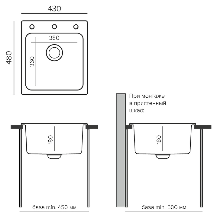 Мойка кухонная Polygran QuartzBond Bond-430 43х48 см, уголь