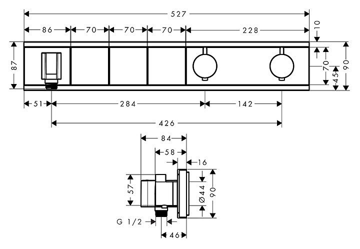 Смеситель для душа встраиваемый термостат Hansgrohe RainSelect 15356400 для 3 потребителей