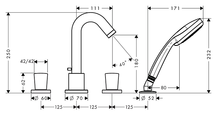 Смеситель для ванны и душа на борт ванны Hansgrohe Logis 71314000 на 4 отверстия