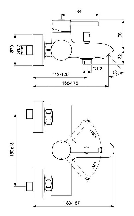 Смеситель для ванны с душем Ideal Standard Kolva BC675U4