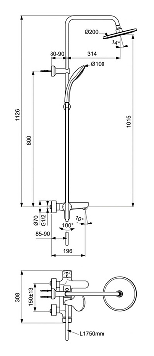 Стойка душевая Ideal Standard IDEALRAIN CERAFINE O BC525AA