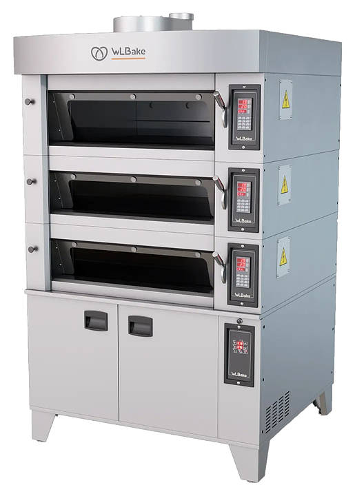 Подовая печь WLBake 3D.2T4060 серии DECK используется на предприятиях пищевой промышленности, в пекарнях и кондитерских для выпечки мелкоштучной хлебобулочной продукции и мучных кондитерских изделий. Модель оснащена электронным управлением и пароувлажнением на каждый под. Особенности: