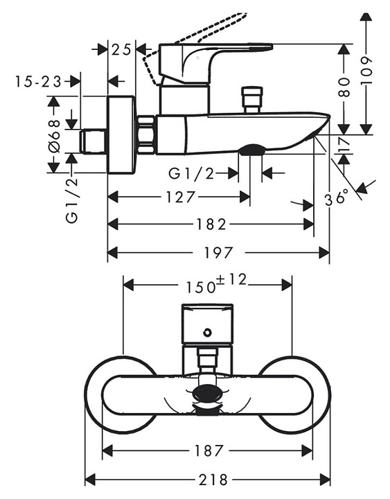 Смеситель для ванны и душа Hansgrohe Rebris E 72450000