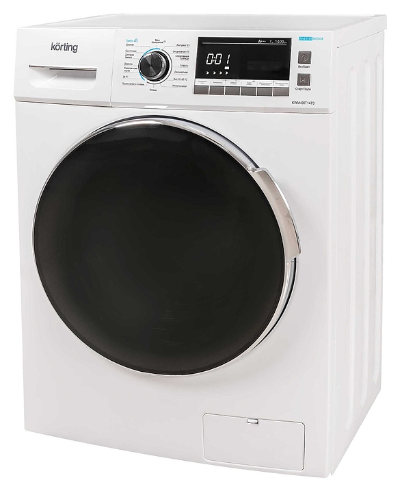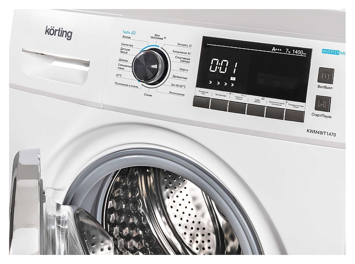 Стиральная машина Korting KWM 49IT1470 используется в прачечных, химчистках и отелях, а также в частных домах и квартирах для стирки, полоскания и отжима белья. Модель оснащена электронной панелью управления и дисплеем с индикацией продолжительности программ. Бак изготовлен из полимерного материала, барабан - из нержавеющей стали. Программы стирки: