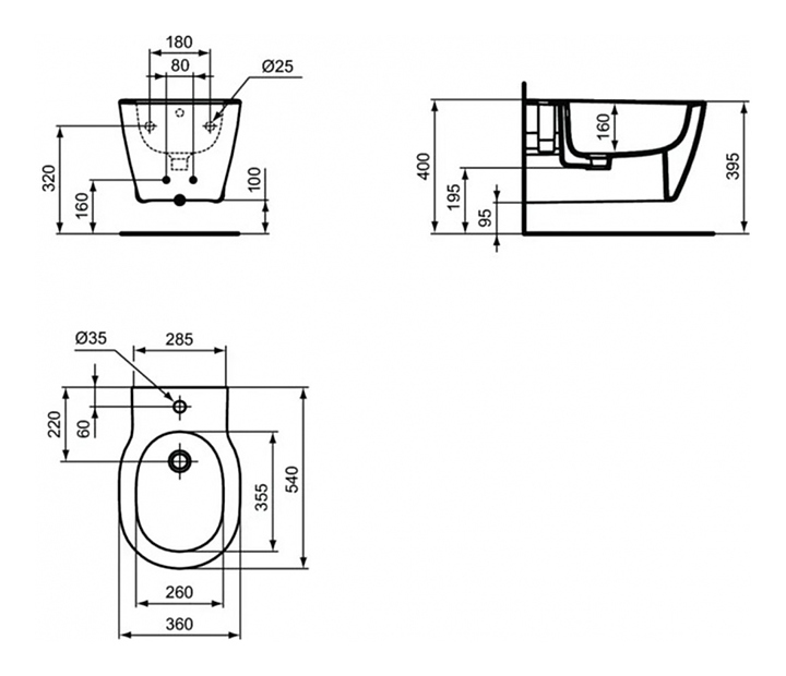 Биде Ideal Standard Connect E772201 дополнит интерьер любой ванной комнаты. Благодаря подвесной конструкции модель не занимает много места в помещении, а свободное пространство под чашей делает уборку в ванной комнате гораздо легче. Безободковое исполнение позволяет предотвратить скопление бактерий и грязи на внутренней поверхности чаши и обеспечивает ее чистоту и гигиеничность использования. Изделие выполнено из санфарфора, который обладает повышенной прочностью и устойчивостью к негативным внешним факторам, а также долгое время сохраняет идеальную белизну и не впитывает запахи и грязь. В комплект поставки входит крепеж TT0299327. Смеситель и инсталляция в комплект поставки не входит. Особенности:
