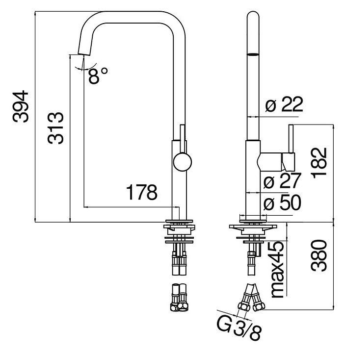 Смеситель NOBILI ACQUERELLI AQ93113CR предназначен для использования в кухонных помещениях для подачи горячей и холодной воды. Модель оснащена системой против известковых отложений для легкого ухода и аэратором, который насыщает водный поток воздухом и создает струю без брызг, а также способствует сокращению потребления воды. Однорычажный тип управления позволяет очень быстро и плавно регулировать подачу воды одной рукой. В комплект поставки входит гибкая подводка. Особенности: