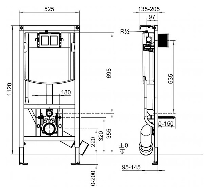 Система инсталляции Villeroy & Boch ViConnect 92242700 предназначена для установки с подвесными унитазами. Модель представляет собой настенную опорную раму с бачком и регулируемыми по высоте ножками. Рама выполнена из стали с антикоррозийным порошковым напылением. В комплект поставки входят бачок, инсталляция и крепления для установки. Кнопка смыва не входит в комплект поставки и приобретается отдельно. Особенности: