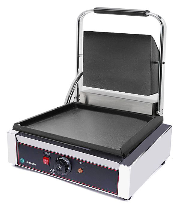 Контактный гриль Hurakan HKN-PE34FT предназначен для обжаривания стейков и сосисок, приготовления сэндвичей, полуфабрикатов, подогрева булочек, гамбургеров, хот-догов на предприятиях общественного питания и торговли. Высокая скорость приготовления достигается благодаря встроенным в обе части аппарата тепловым элементам, которые плотно прилегают к продукту. Модель оснащена электромеханической панелью управления, регулируемым термостатом, индикатором нагрева и лотком для сбора жира. Корпус выполнен из нержавеющей стали, рабочая поверхность - из чугуна покрытого эмалью. Дополнительные характеристики:
