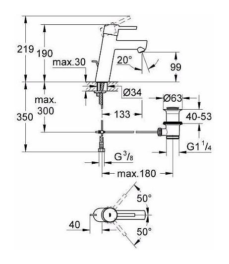 Смеситель для раковины Grohe Concetto 23450001 предназначен для подачи горячей и холодной воды в ванных помещениях. Модель оснащена керамическим картриджем, обеспечивающим плавный ход рычага смесителя, контроль и точность при выборе напора и температуры воды. Смеситель отличается простой установкой благодаря системе быстрого монтажа и оснащен ограничителем температуры воды. Аэратор с ограничением расхода создает струю без брызг для максимального комфорта. Изделие выполнено из латуни, которая отличается прочностью, долговечностью и устойчивостью к перепадам температуры, рычаг - из металла. В комплект поставки входит донный клапан. Дополнительные характеристики: