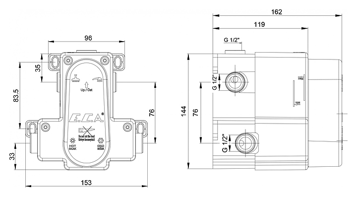 Встраиваемая часть E.C.A. 102166204EX предназначена для монтажа встраиваемых смесителей 102167216EX-KDE. Изделие выполнено из металла и пластика. Характеристики: