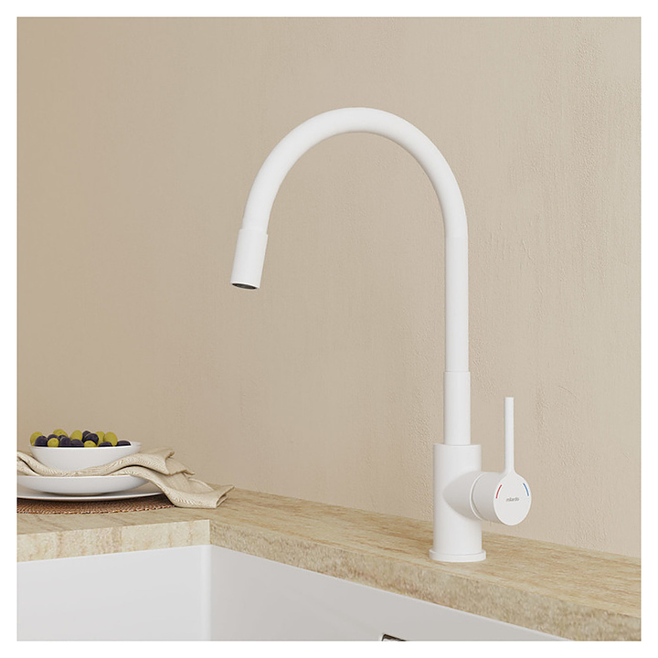 Смеситель для кухни Milardo Meal M01WT0FM05 с гибким изливом, белый матовый