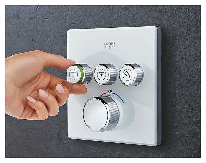 Смеситель для ванны и душа Grohe Grohtherm SmartControl 29157LS0 предназначен для подачи горячей и холодной воды в ванных помещениях. Модель является частью коллекции Grohtherm, что позволяет выдержать дизайн кухни и ванной комнаты в едином стиле. Инновационная технология SmartControl позволяет регулировать напор воды с помощью нажатия и поворачивания кнопки, а функция TurboStat гарантирует подачу воды постоянной температуры. Изделие выполнено из высококачественной латуни, отличающейся прочностью, долговечностью и устойчивостью к перепадам температур, накладная панель - из металла, лицевая панель - из акрилового цвета. Встроенная монтажная часть в комплект поставки не входит. Особенности: