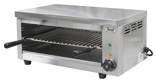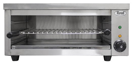 Гриль-саламандер ROAL AT-936 предназначен для обжаривания стейков и сосисок, приготовления сэндвичей, полуфабрикатов, подогрева булочек, гамбургеров, хот-догов и поддержания готовых блюд в разогретом состоянии на предприятиях общественного питания и торговли. Модель оснащена термостатом для регулировки температуры нагрева ТЭНа. В комплекст поставки входят: емкость для масла и сетка для барбекю. Особенности: