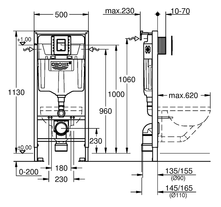 Инсталляция для унитаза с бачком Grohe Rapid SL 39501000