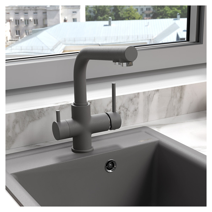 Смеситель LEMARK Comfort предназначен для подачи горячей и холодной воды в кухонных помещениях. Модель оснащена подключением фильтра для питьевой воды и керамическим картриджем, обеспечивающим плавный ход рычага смесителя, контроль и точность при выборе напора и температуры воды. Аэратор создает мягкую струю без брызг. Изделие выполнено из высококачественной латуни, отличающейся прочностью, долговечностью и устойчивостью к перепадам температур. В комплект поставки входят аэратор для водопроводной воды Neoperl Cascade, аэратор для питьевой воды Neoperl Perlator, гибкая подводка и переходник для подключения шланга от фильтра с питьевой водой. Особенности: