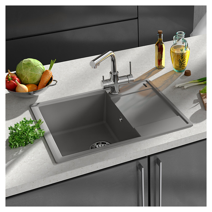 Мойка LEMARK Imandra 640 предназначена для рационального планирования рабочего места на кухне. Крыло-сушилка служит подставкой для посуды и продуктов. Изделие выполнено из кварцгранита, который выдерживает колебания температуры, имеет высокую прочность и стойкость к пищевым и химическим красителям. В комплект поставки входят крепления, сливная арматура с круглым переливом и сифон с возможностью подключения посудомоечной или стиральной машины. Особенности: