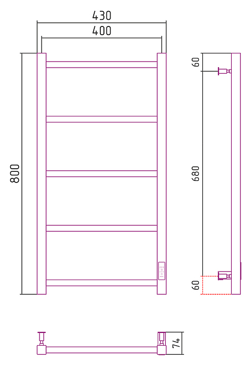 Полотенцесушитель электрический Стилье Формат 25 П 80х40 см, с терморегулятором, черный матовый