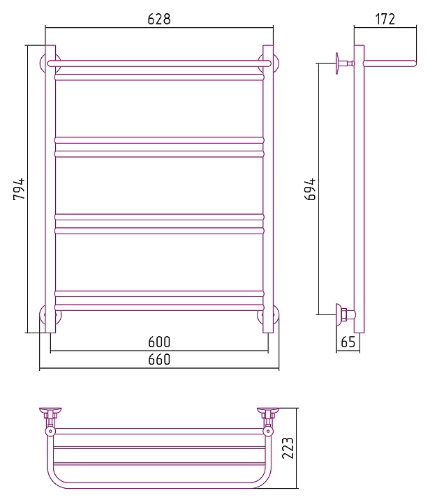 Полотенцесушитель водяной Стилье Версия-Н1 П16 80х60 см, с полкой, черный