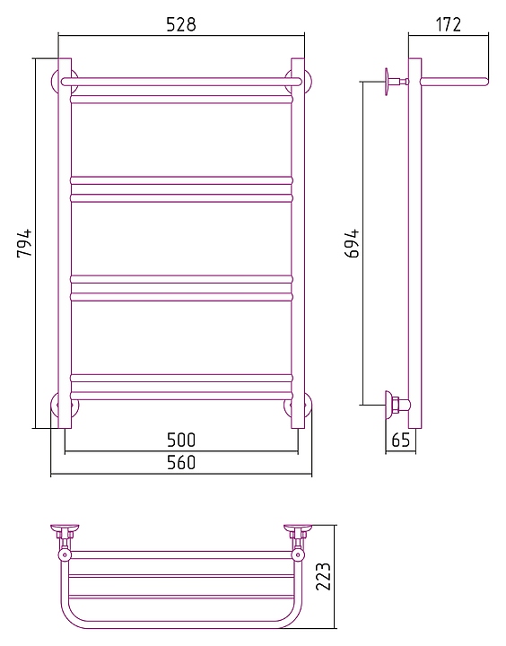 Полотенцесушитель водяной Стилье Версия-Н1 П16 80х50 см, с полкой, белый