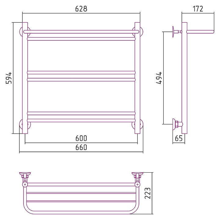 Полотенцесушитель водяной Стилье Версия-Н1 П16 60х60 см, с полкой, белый