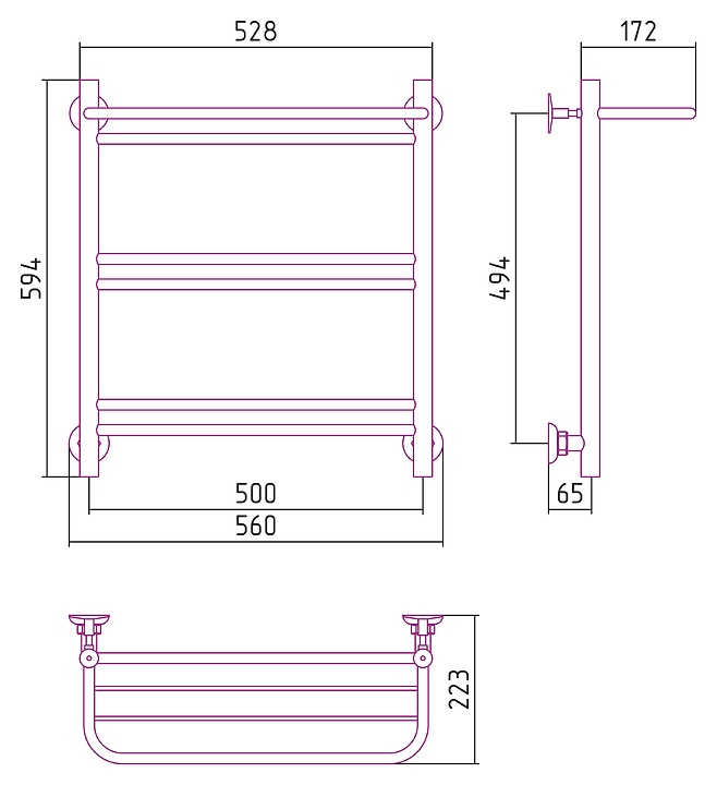 Полотенцесушитель водяной Стилье Версия-Н1 П16 60х50 см, с полкой, черный