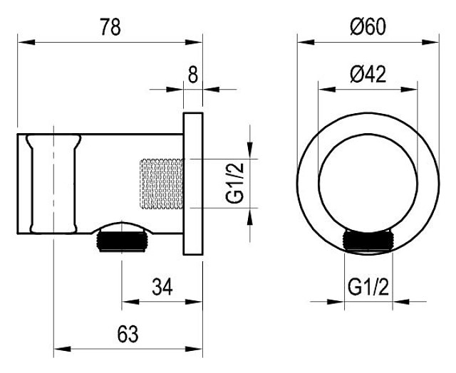 Настенное подключение Ravak 706.20 X07P572 подходит ко всем смесителям скрытого монтажа Ravak. Модель оснащена держателем для душа. Изделие выполнено из высококачественной латуни, которая отличается прочностью, долговечностью и устойчивостью к перепадам температур. Характеристики:
