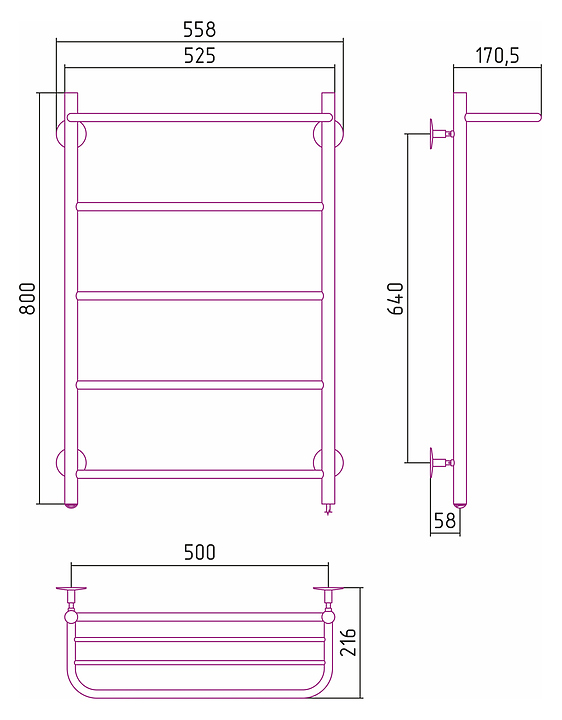 Полотенцесушитель электрический Стилье Формат 30 П 80х50 см, с полкой, без покрытия