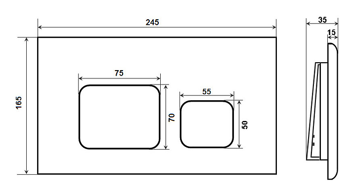 Кнопка смыва TIMO SOLI FP-002W предназначена для установки с инсталляциями смывных бачков скрытого монтажа. Аксессуар прямоугольной формы с 2 прямоугольными клавишами, непосредственно приводящими в действие экономный режим большого и малого механизм смыва. Дополнительные характеристики: