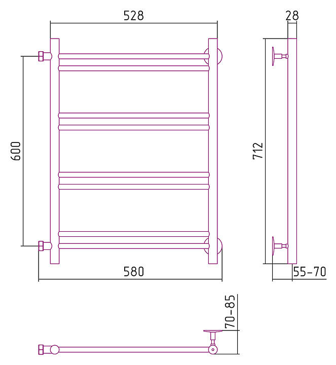 Полотенцесушитель водяной Стилье Версия-Б1 П 16 60х50 см белый
