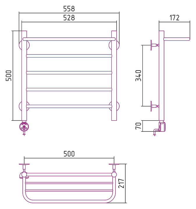 Полотенцесушитель электрический Стилье Формат 20 ТЛ П16 50х50 см, с полкой, без покрытия