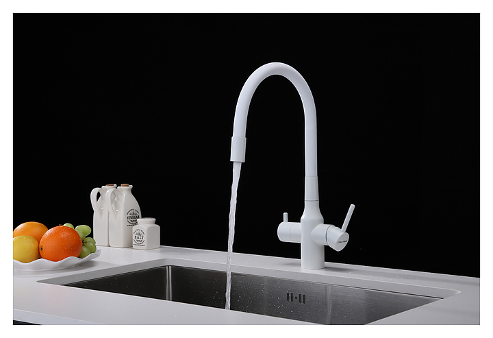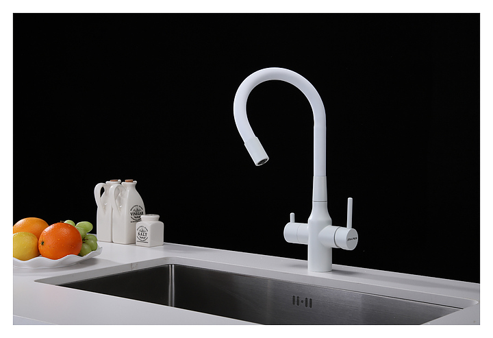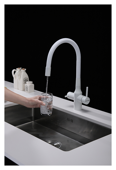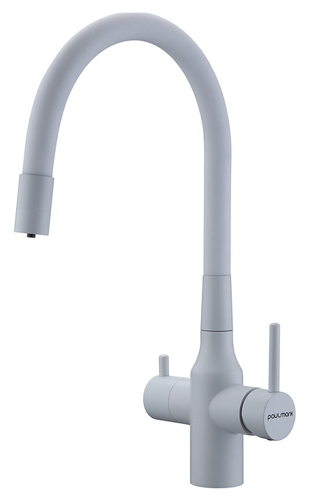 Смеситель Paulmark Salix Sa213419-431 предназначен для подачи горячей и холодной воды в кухонных помещениях. Гибкий излив с фиксацией обеспечивает оптимальный диапазон движения. Отдельное подключение фильтра для питьевой воды гарантирует, что питьевая и водопроводная вода не смешиваются. Изделие выполнено из латуни, отличающейся прочностью, долговечностью и устойчивостью к перепадам температур, излив - из силикона. В комплект поставки входят гибкая подводка из нержавеющей стали, усиленный комплект крепления, выход для подключения системы фильтрации воды, переходник цанга для подключения фильтра. Дополнительные характеристики: