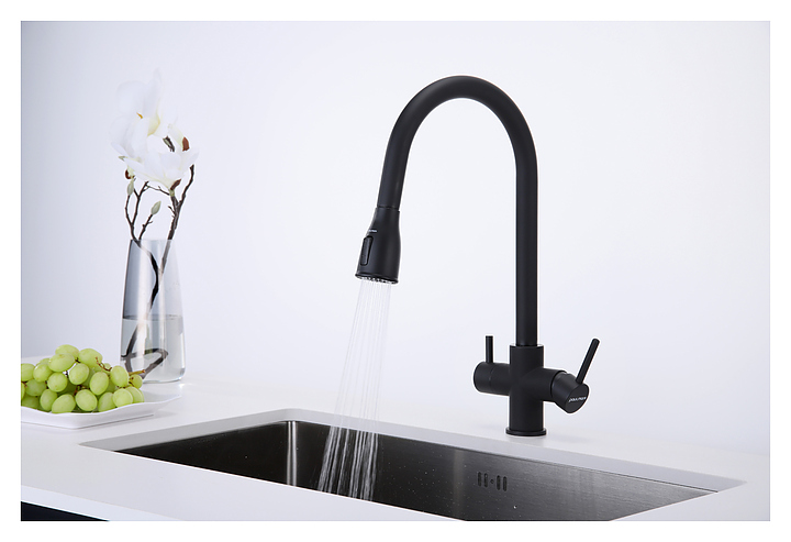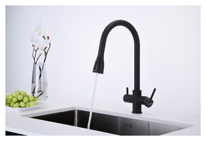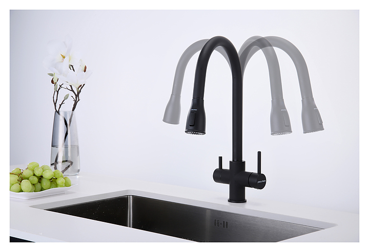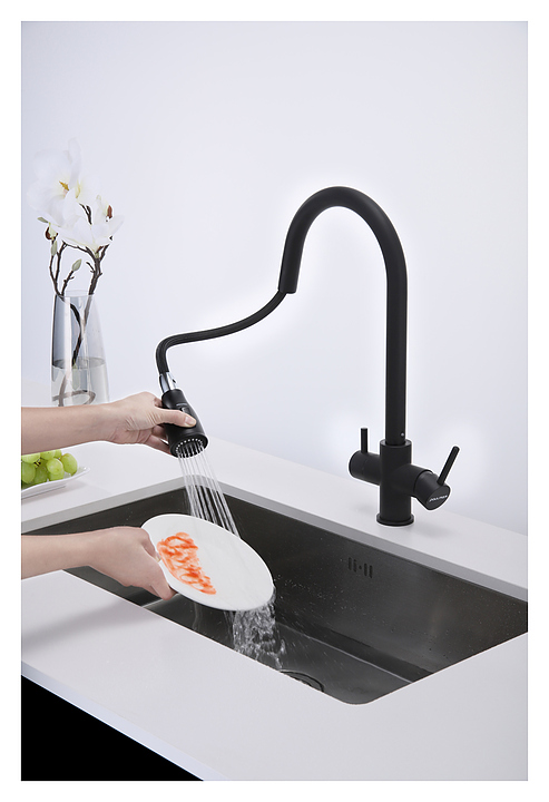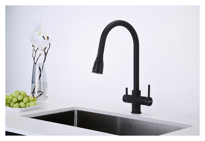 Смеситель Paulmark Lange La214212-401 предназначен для подачи горячей и холодной воды в кухонных помещениях. Вытяжной шланг облегчает процесс мойки посуды или продуктов любого размера и формы. Подключение фильтра для питьевой воды гарантирует, что питьевая и водопроводная вода не смешиваются. Изделие выполнено из латуни, отличающейся прочностью, долговечностью и устойчивостью к перепадам температур. В комплект поставки входят гибкая подводка из нержавеющей стали, усиленный комплект креплений и запасной аэратор. Дополнительные характеристики: