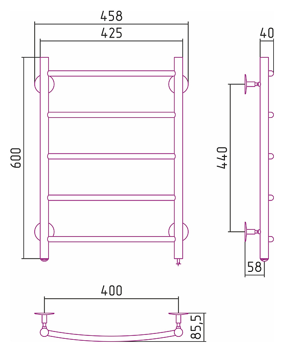 Электрический полотенцесушитель Стилье Формат 40 П (5) Г16 предназначен для подогрева и сушки полотенец, а также для обогрева ванных комнат в квартирах, коттеджах и частных домах. Модель оснащена 5 перекладинами для удобного использования. Изделие выполнено из нержавеющей стали AISI 304 L, отличающейся прочностью, долговечностью и устойчивостью к перепадам температур. Скрытое подключение в комплект поставки не входит и приобретается отдельно. Особенности: