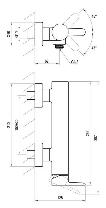 Смеситель для душа настенный Ravak Puri black PU 032.20/150 X070187