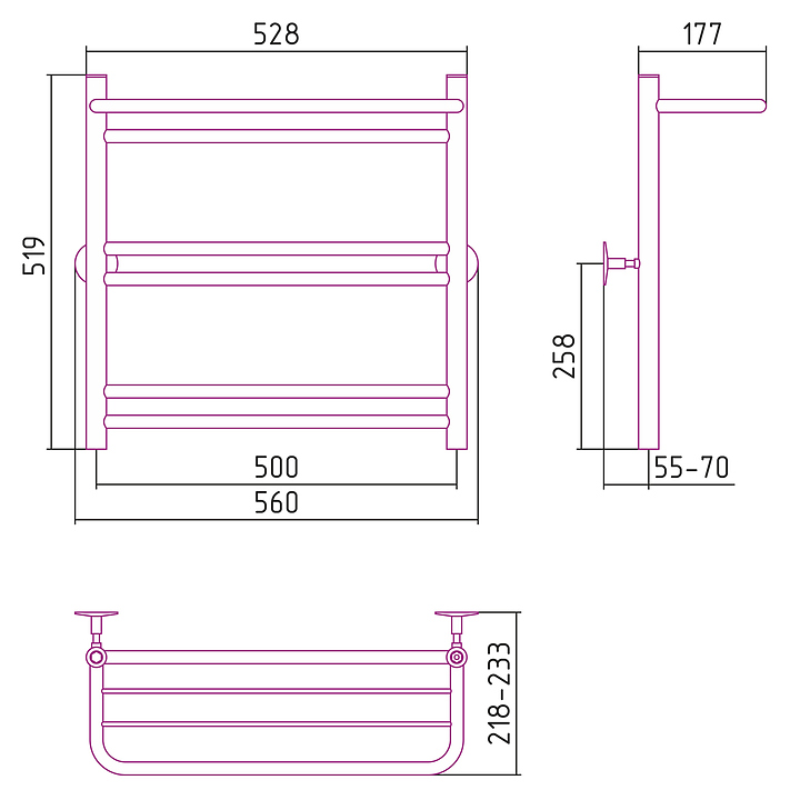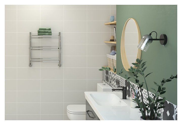 Полотенцесушитель водяной Стилье Универсал-56 П18 60х50 см с полкой, без покрытия