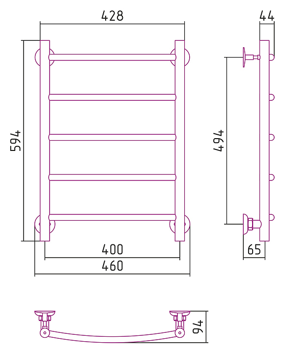 Полотенцесушитель водяной Стилье Версия-Н2 (5) Г 18 60х40 см черный