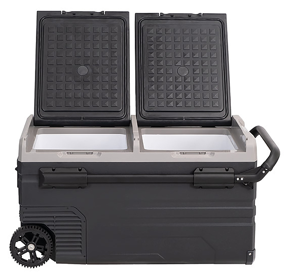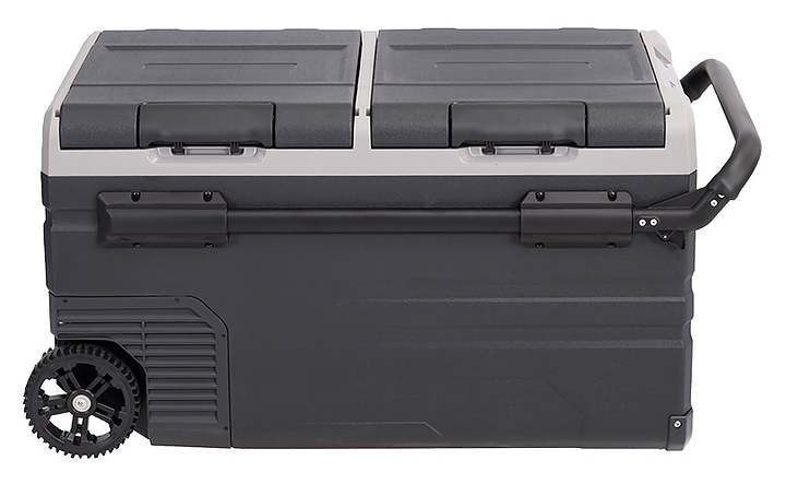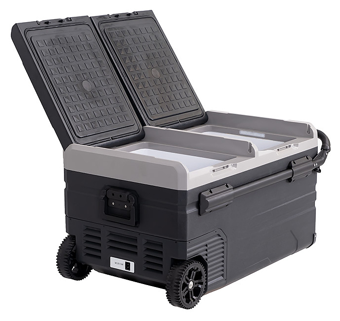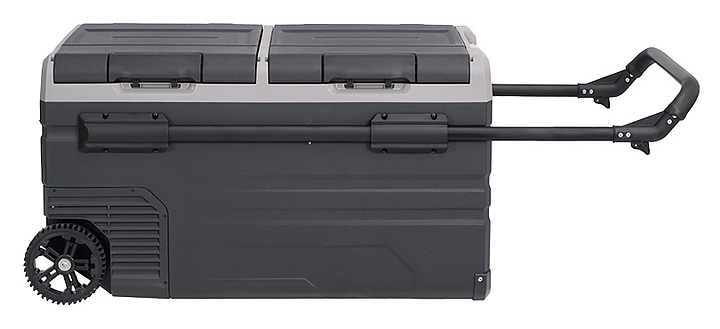 Переносной автохолодильник Alpicool TWW75 предназначен для охлаждения и глубокой заморозки, хранения и транспортировки продуктов питания и напитков в легковых и грузовых автомобилях, автодомах, специальной технике, лодках, катерах, яхтах, других видах транспорта. Модель оснащена 2 независимыми камерами, электронным термостатом, разъёмом USB, светодиодным внутренним освещением, 2 корзинами для продуктов, 2 колесами и телескопической ручкой. Корпус выполнен из пластика, теплоизоляция - из полиуретановой пены высокой плотности. Особенности: