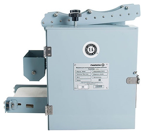 Пельменный аппарат Foodatlas JPG50 ECO используется на предприятиях общественного питания и торговли для раскатки теста и его нарезания на равные заготовки круглой формы для производства пельменей и вареников. Модель оснащена подающим конвейером из серии горизонтальных валков, тестоприемником, прижимным валом, формовочной матрицей, устройством для посыпки заготовок сухой мукой и конвейером для выгрузки. Корпус выполнен из стали с применением современных техник хромирования и окрашивания, контактирующие с продуктом металлические компоненты – из высококачественной пищевой нержавеющей стали, упаковка – фанерный ящик. Особенности: