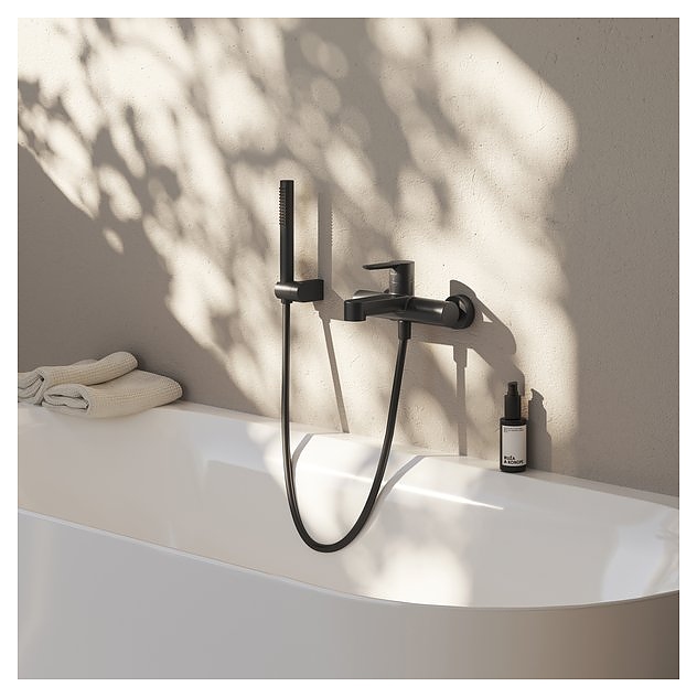 Смеситель для ванны и душа настенный Ravak Puri black PU 022.20/150 X070185