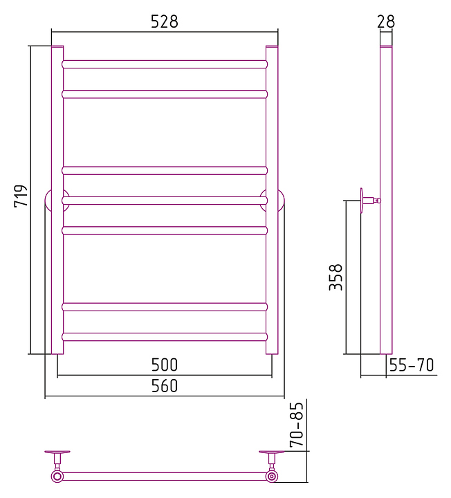 Полотенцесушитель водяной Стилье Универсал-55 П18 80х50 см без покрытия
