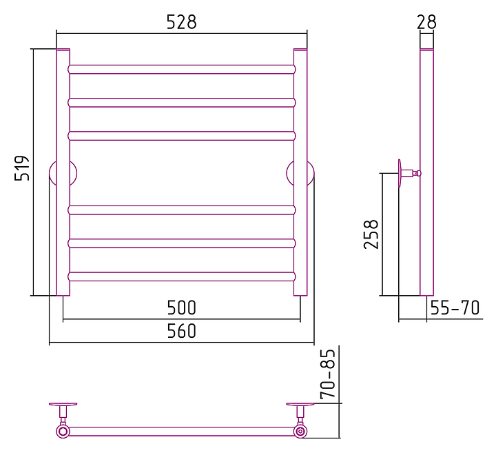 Полотенцесушитель водяной Стилье Универсал-55 П18 60х50 см без покрытия