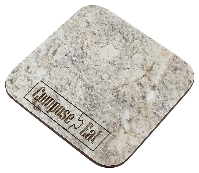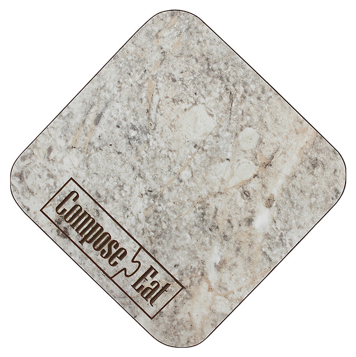 Подставка ComposeEat PGS963031OA4 серии Everyday предназначена для размещения кружек с горячими и холодными напитками, выкладки хлебобулочных изделий и других продуктов в процессе сервировки стола на предприятиях общественного питания и торговли, а также в домашних условиях. Модель квадратной формы выполнена из многослойного композитного материала на основе крафтовой бумаги с поверхностью цвета серый мрамор. Особенности: