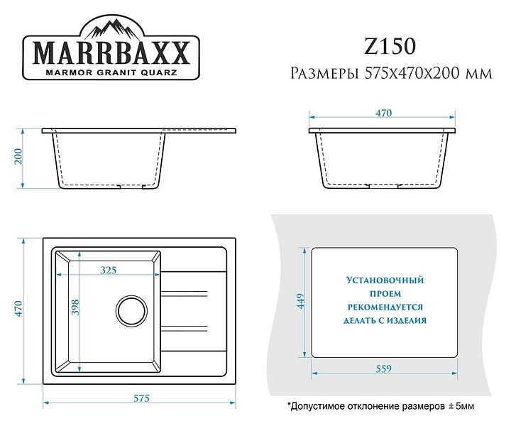 Мойка Marrbaxx Анастасия Z150Q008 предназначена для установки в кухонных помещениях. Изделие выполнено из кварца, который отличается внешним видом, напоминающим натуральный камень, способностью поглощать шум воды, стойкостью к действию моющих средств, экологичностью и долговечностью. В комплект поставки входят сливная арматура, герметик и фреза. Смеситель в комплект поставки не входит и приобретается отдельно. Особенности: