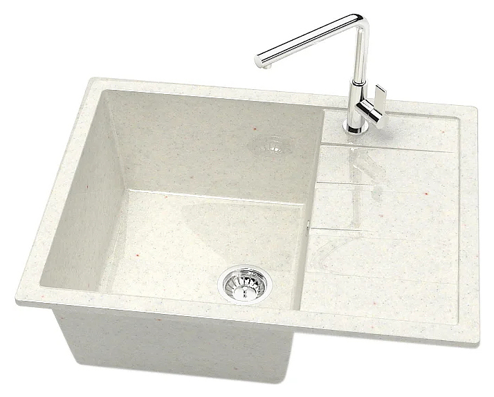 Мойка Marrbaxx Катрин Z151Q007 предназначена для установки в кухонных помещениях. Модель оснащена крылом, на котором удобно располагать посуду и другие бытовые принадлежности. Изделие выполнено из кварца, который отличается внешним видом, напоминающим натуральный камень, способностью поглощать шум воды, стойкостью к действию моющих средств, экологичностью и долговечностью. В комплект поставки входят сливная арматура, герметик и фреза. Смеситель в комплект поставки не входит и приобретается отдельно. Особенности: